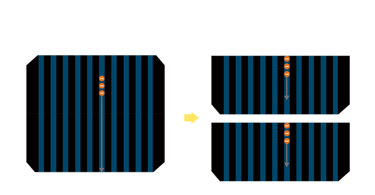 - 多条电极栅结构,可有效降低外力对于电池的影响,限制电池隐裂 (Micro-cracks) 范围,防止电流传输路径 (Current distribution) 之损坏进一步扩大。